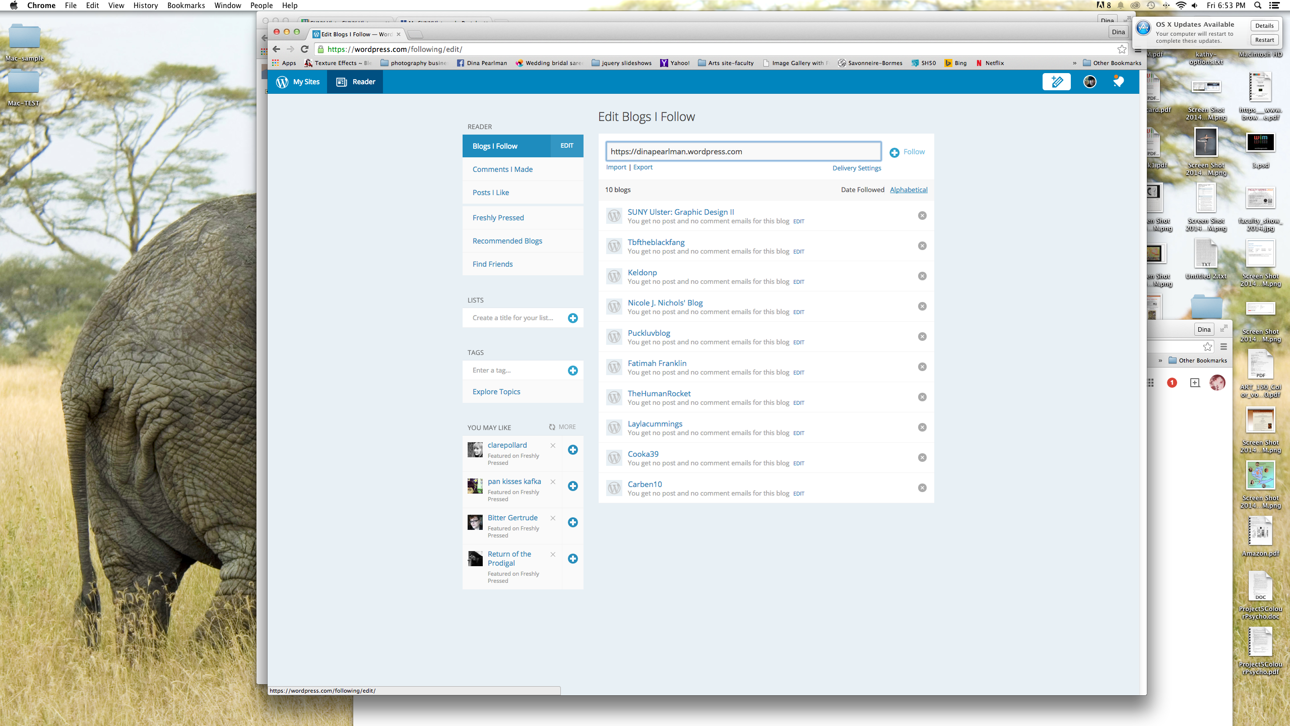 3. Log into your blog, click on the Reader tab (Figure 1) in the upper left, and past my URL in to follow me (Figure 2), so you will be notified of any updates. You will be expected to keep up with my posts, which should appear 2-3 times a week.